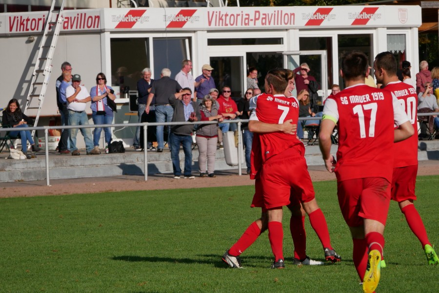 Eine starke Mannschaftsleistung über 90 Minuten brachte den verdienten Sieg über den VfB. Im Ergebnis vielleicht ein bisschen zu hoch - aber dennoch verdient. Nach den enttäuschenden Niederlagen gegen den 1. FC Wiesloch und dem 1. FC Dilsberg wollte sich die Mannschaft rehabilitieren und wichtige 3 Punkte im Kampf gegen den Abstieg einfahren. Das dies nicht einfach werden würde, war Mannschaft und Anhängern von Beginn an bewusst. Hellwach kam unser Team auf den Rasen und erwischte einen guten Start. Nach schönem Zuspiel auf A. Walter schlug dieser eine genaue Flanke auf Eppinger, der gekonnt zur 1:0 Führung (6.) für unser Team einnetzte. Danach entbrannte auf dem Platz ein leidenschaftliches Spiel auf Augenhöhe. Leimen versuchte über viel Ballbesitz zum Ausgleich zu kommen. Unsere SG verteidigte gekonnt uns setzte gefährliche Konter. Obwohl beide Mannschaften mit viel Engagement zugange waren, verlief die Partie äußerst fair. Nennenswerte Tormöglichkeiten ergaben sich bis zur Halbzeitpause keine mehr und so ging man mit 1:0 in die Kabine. Die zweite Hälfte begann, wie die erste geendet ist. Leimen drückte auf den Ausgleich, Mauer verteidigte geschickt und erspielte sich gute Tormöglichkeiten. In der 76. Spielminute wurde A. Walter in Nähe des gegnerischen Strafraums unsaft von den Beinen geholt. Ein Foul, das vom guten Schiedsrichtergespann nicht gesehen wurde. Aber eines, dass die Partie zu gunsten unserer Viktoria entschied. Denn der gegnerische Torwart wurde in der Folge vom Schiedsrichter mit glatt ROT vom Platz gestellt (76.). Aber warum? Eigentlich schien die Situation für Leimen doch gut entschieden worden zu sein. Der Torwart ging erst unseren Spieler verbal an und dann wohl auch den Schiedsrichter, dem dann nichts anderes übrig blieb, als die rote Karte zu zeigen. Den fälligen Freistoß - zentral vor dem Leimener Tor schoss A. Walter unter der Mauer durch. Der Ersatztorwart konnte nur abklatschen und Eppinger schob den Ball zum 2:0 über die Linie (80.). In Überzahl übernahm unsere Mannschaft jetzt die Spielgestaltung und erspielte sich Torchance um Torchance. In der 83. Minute war es Keusch, der auf Zuspiel von A. Walter zum 3:0 traf. Den Schlusspunkt setzte dann Hadasik, der auf Zuspiel von D. Walter den Treffer zum 4:0 Endstand beisteuerte.